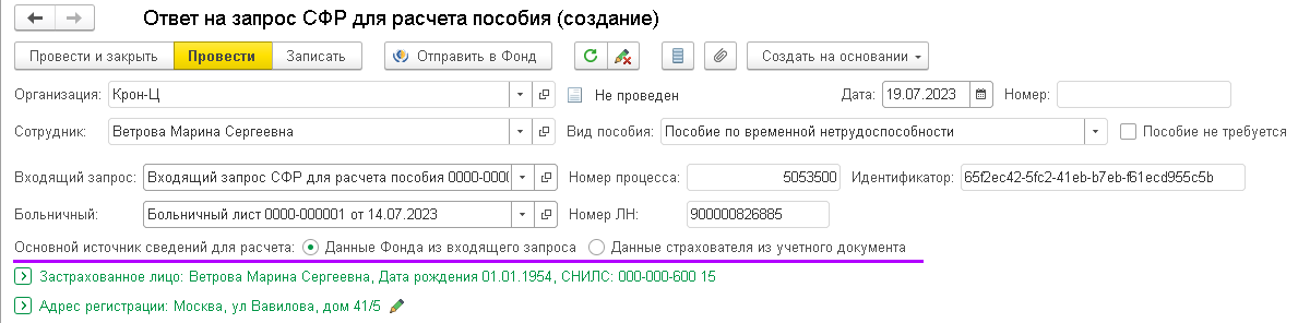 По умолчанию он берет данные страхователя, но переключается на данные Фонда при совпадении следующих условий: