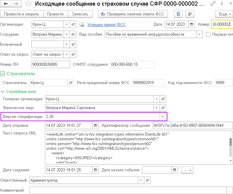 Фонд в данных входящего запроса пока еще не предоставляет информации о версии спецификации. Но такие планы есть. Но это поле нужно уже сейчас, т.к. необходимо учитывать версию спецификации при формировании ответа на запрос, т.к. на старый запрос необходимо отвечать в старом формате.