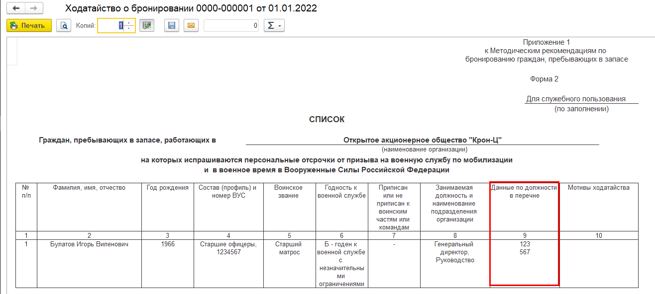 Реализовано отражение информации о мобилизованных сотрудниках в воинском учете.