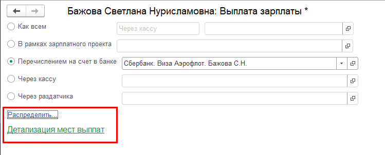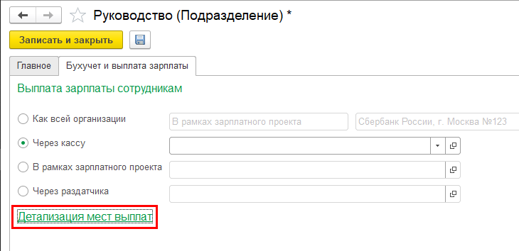 Если детализация не заполнена – логика заполнения ведомостей остается прежней: анализируется место выплаты по сотруднику; если его нет, то подразделению; если нет по подразделению, то по организации. Если и для организации ничего не задано, то считается, что выплата идет из кассы.