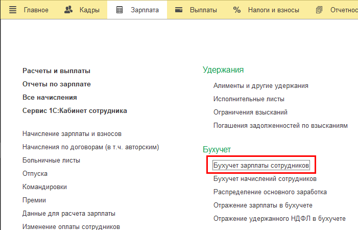 Выполнено развитие возможностей настройки бухучета. Бухучет сотрудника теперь регистрируется не в карточке сотрудника, а новым документом "Бухучет зарплаты сотрудников".
