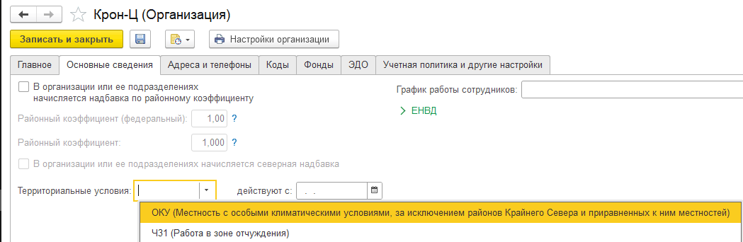Добавлен новый код территориальных условий ОКУ. Доступен для выбора в карточке организации и формах документов.