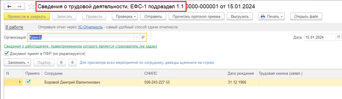 Выполнена актуализация наименований документов, формирующих части отчета ЕФС-1 (СЗВ-СТАЖ, СЗВ-КОРР, ОДВ-1, СЗВ-ТД, ДСВ-3).