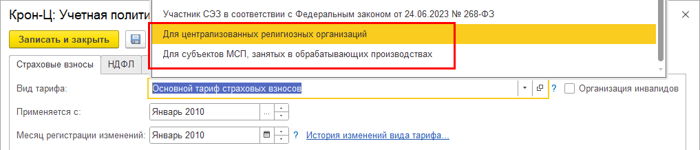 Добавлены новые тарифы страховых взносов, в соответствии с Федеральным законом от 12.07.2024 № 176-ФЗ: