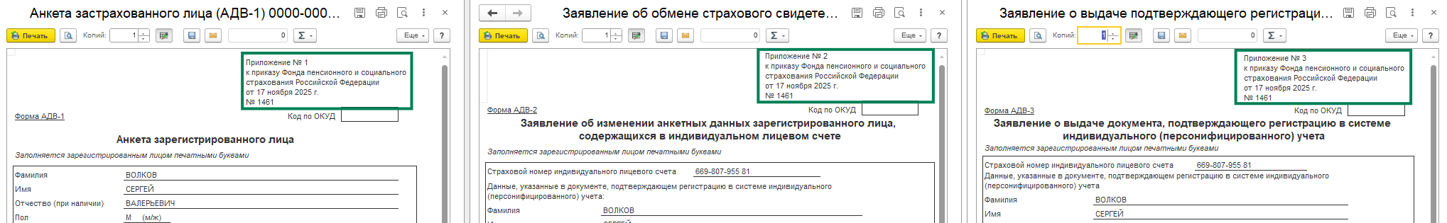 АДВ-1, АДВ-2, АДВ-3 и СЗВ-К с 2026 года, согласно Приказу СФР от 17.11.2025 № 1461.