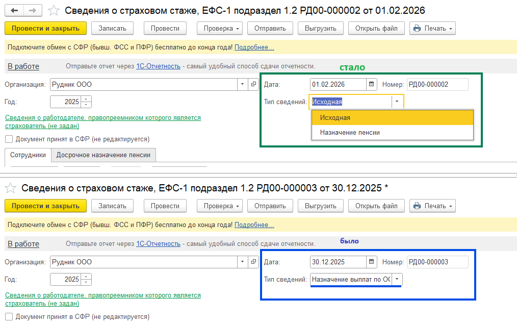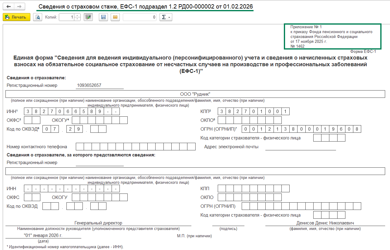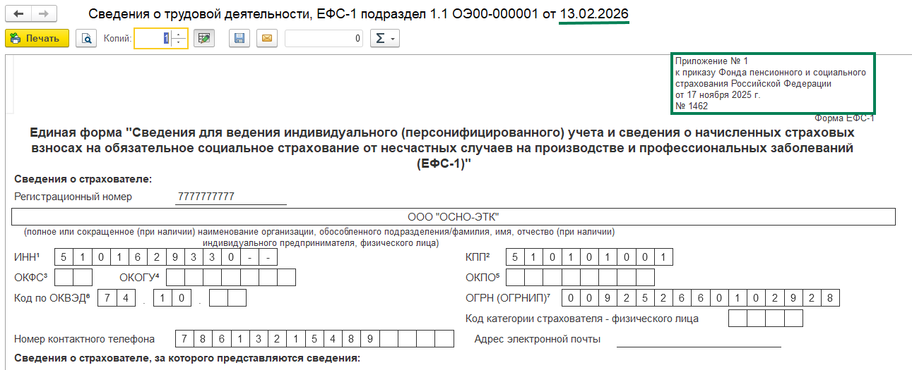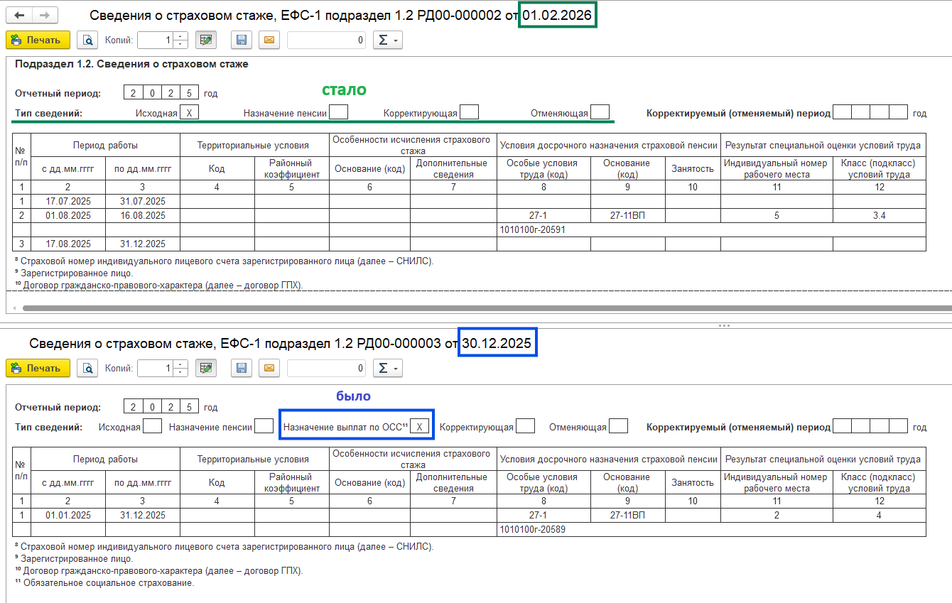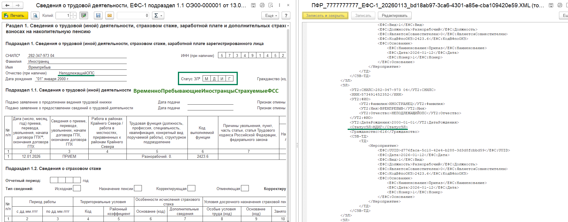 Выполнено обновление подразделов 1.1 и 1.2 формы ЕФС-1,