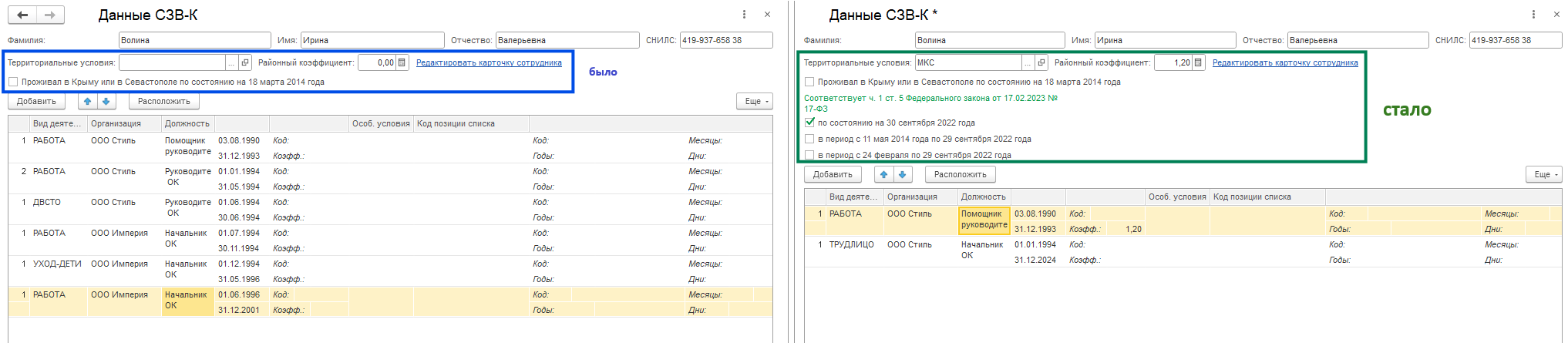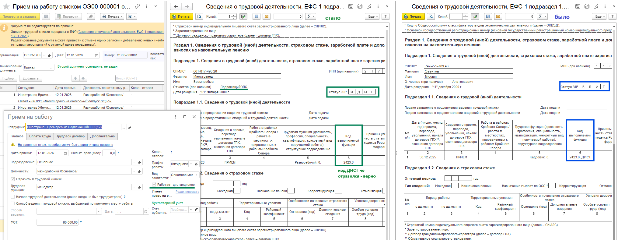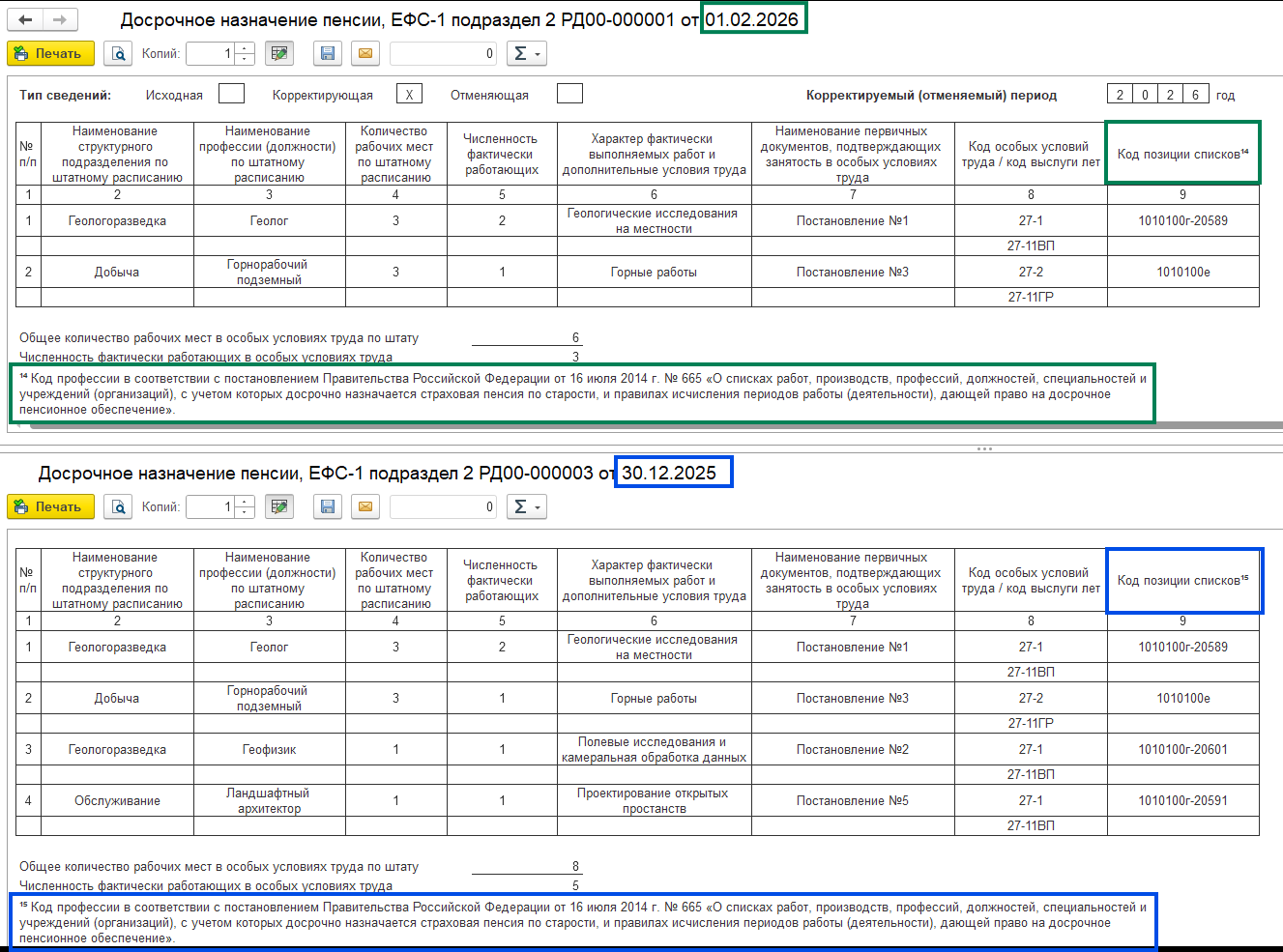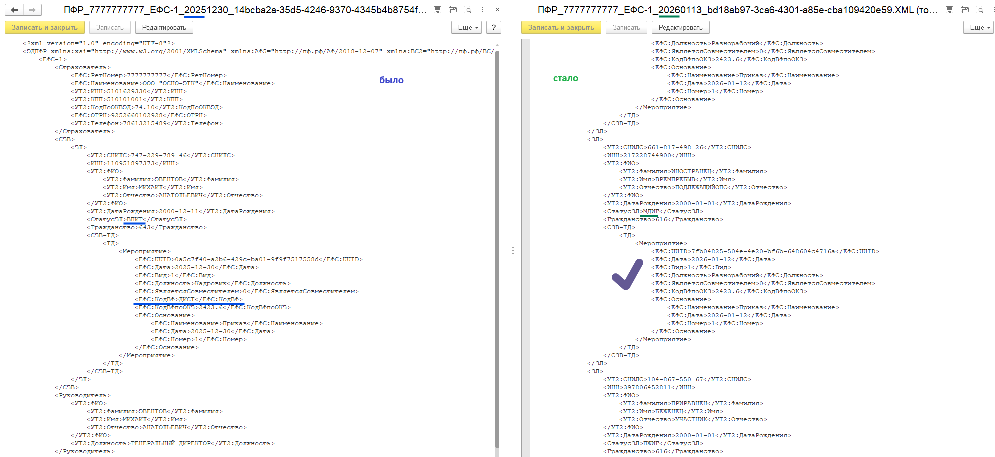 Выполнено обновление подразделов 1.1 и 1.2 формы ЕФС-1,