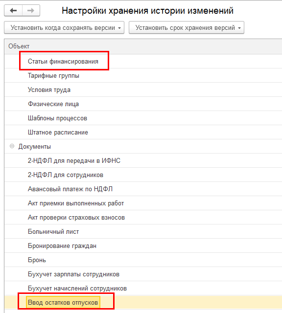 Добавлена возможность хранения истории изменений (версионирования) для справочников "Контрагенты" и "Статьи финансирования", а также документа "Ввод остатков отпусков".