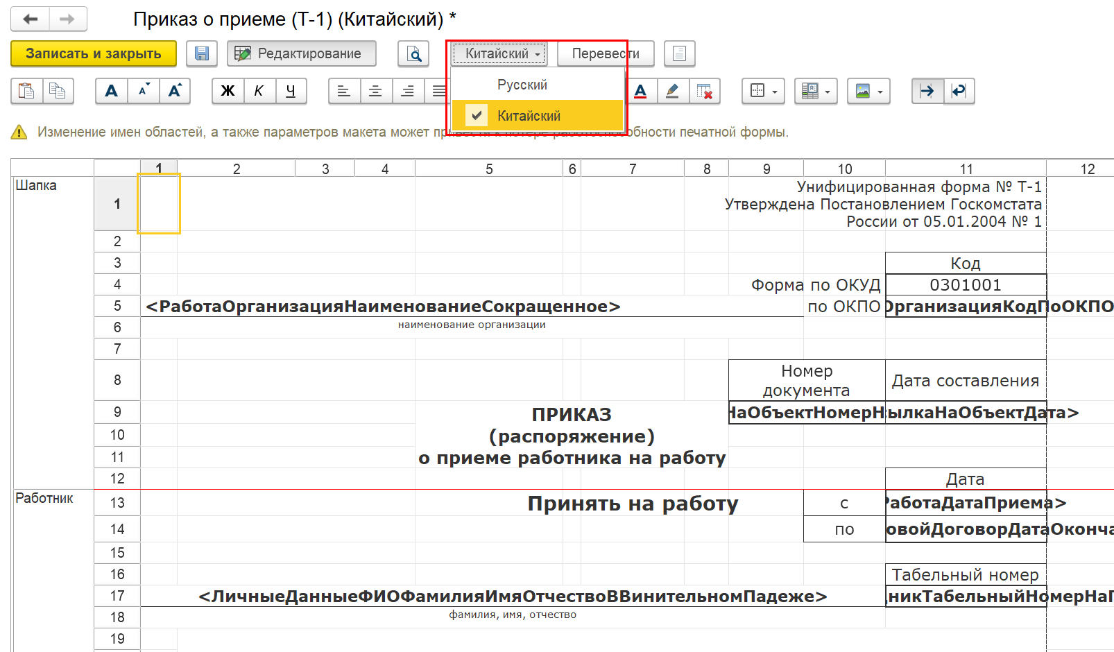 Мультиязычность печатных форм