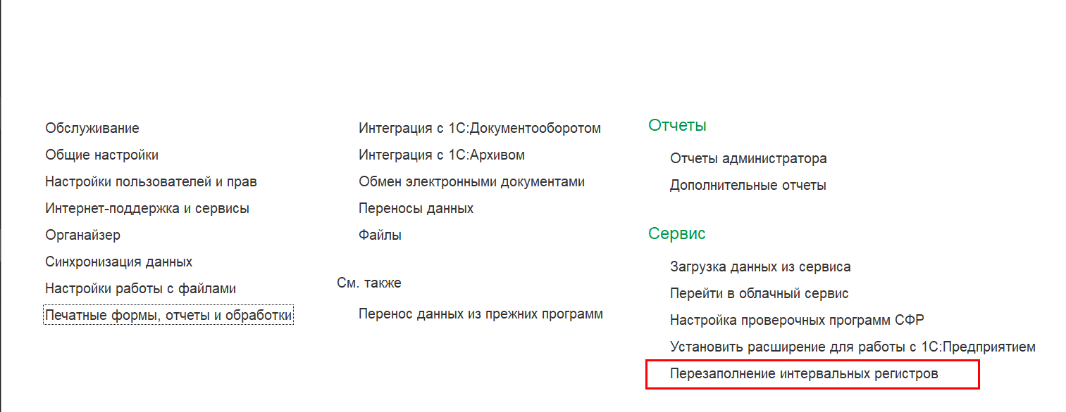 Добавлен сервисный инструмент "Перезаполнение интервальных