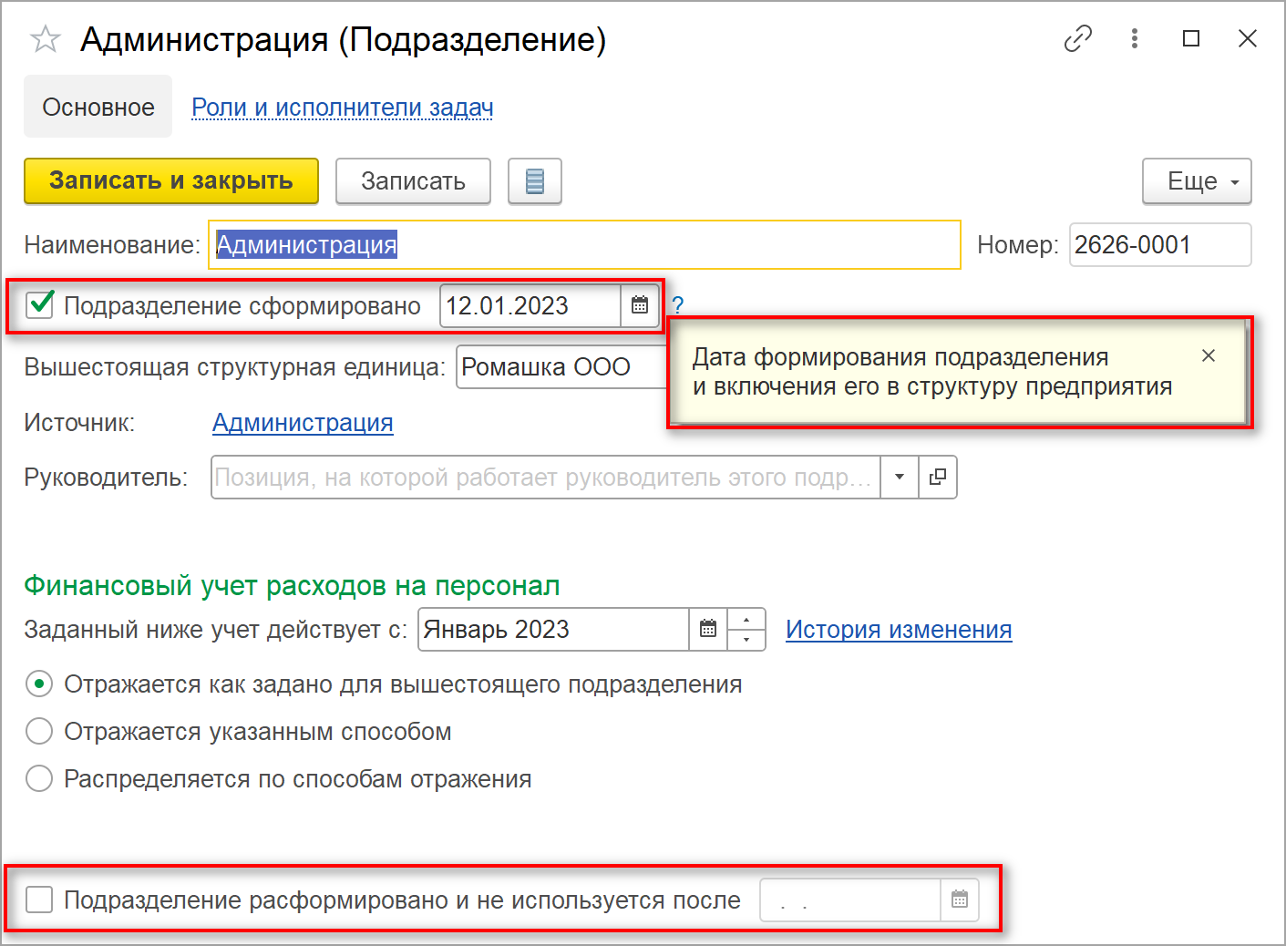 Добавлена возможность для элементов структуры предприятия указания признаков "Сформировано" и "Расформировано" по аналогии с подразделениями организаций.