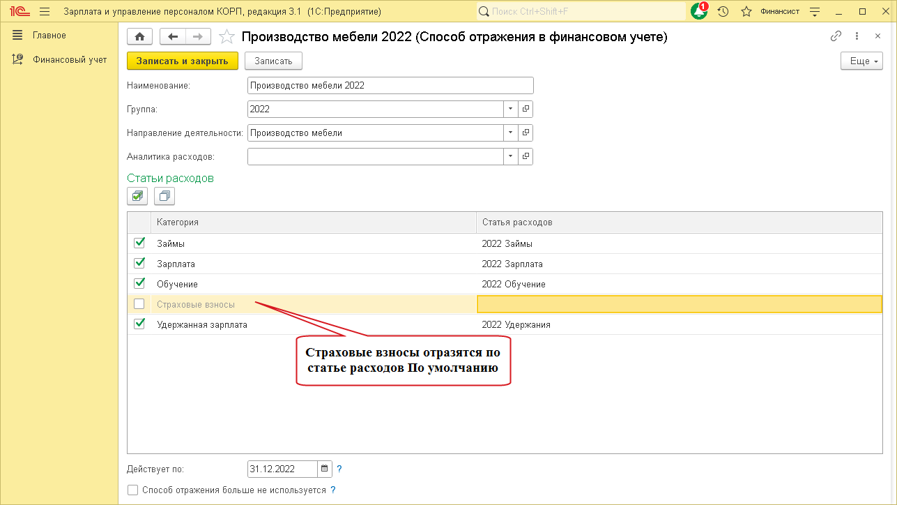 Пример. Расходы на персонал организации с января 2022 года отражаются способом Производство мебели 2022