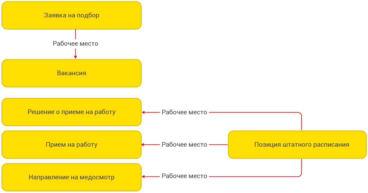 В некоторых компаниях подбор персонала ведется с указанием не только должности, подразделения или позиции штатного расписания, но и конкретного рабочего места будущего сотрудника. В таких случаях рабочее место в 1С:ЗУП КОРП можно указать в: