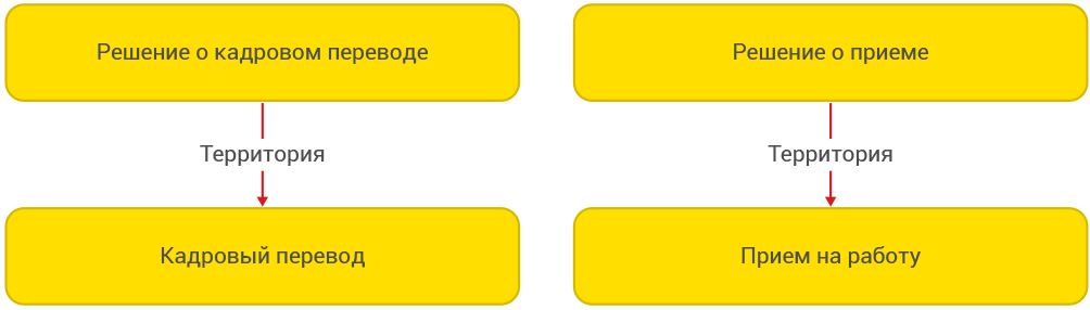 Кадровик на основании решения оформляет Прием на работу, при этом территория: