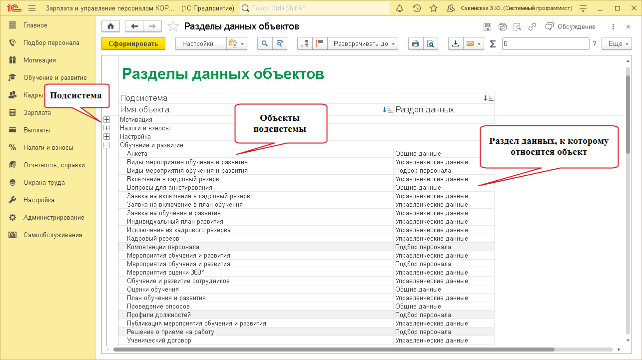 Ниже приведены таблицы. Строки таблицы – это объекты 1С:ЗУП КОРП (документы или справочники). Колонки – это данные, которые указывают в программе 1С:ЗУП КОРП.