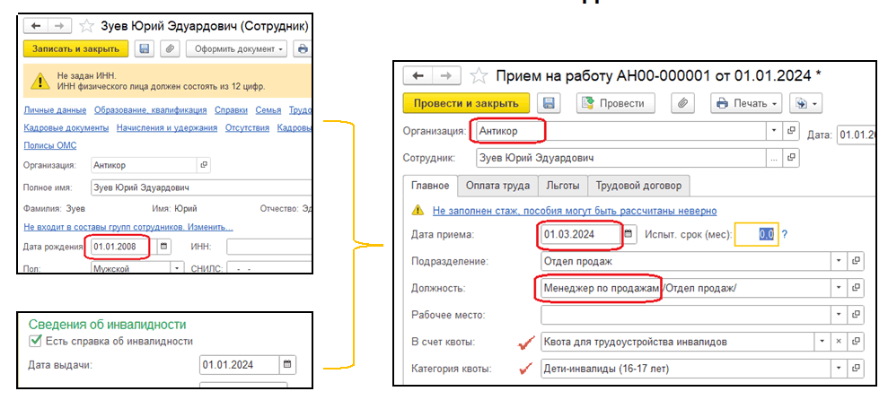 Квота по инвалидам заполняется автоматически, если в карточке сотрудника