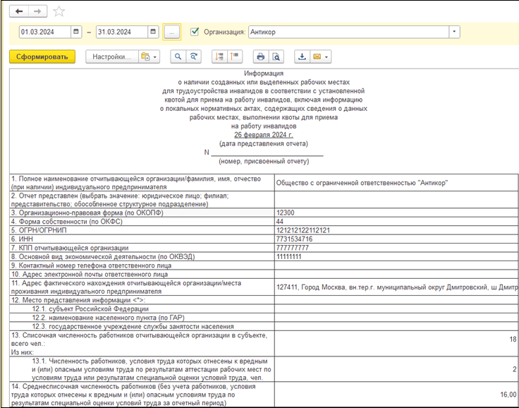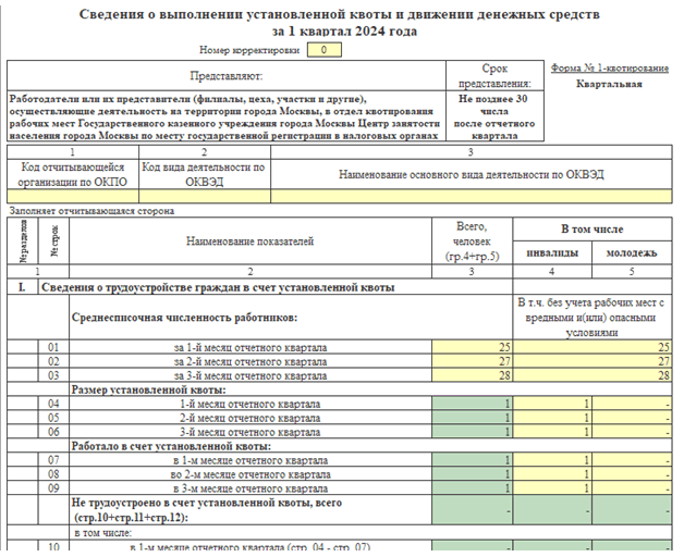 Для обеспечения трудоустройства граждан по квотам используются различные механизмы, одним из которых является постоянный мониторинг и контроль со стороны государственных органов. В связи с этим, поступают запросы на автозаполнение в программе такой отчетности, как: