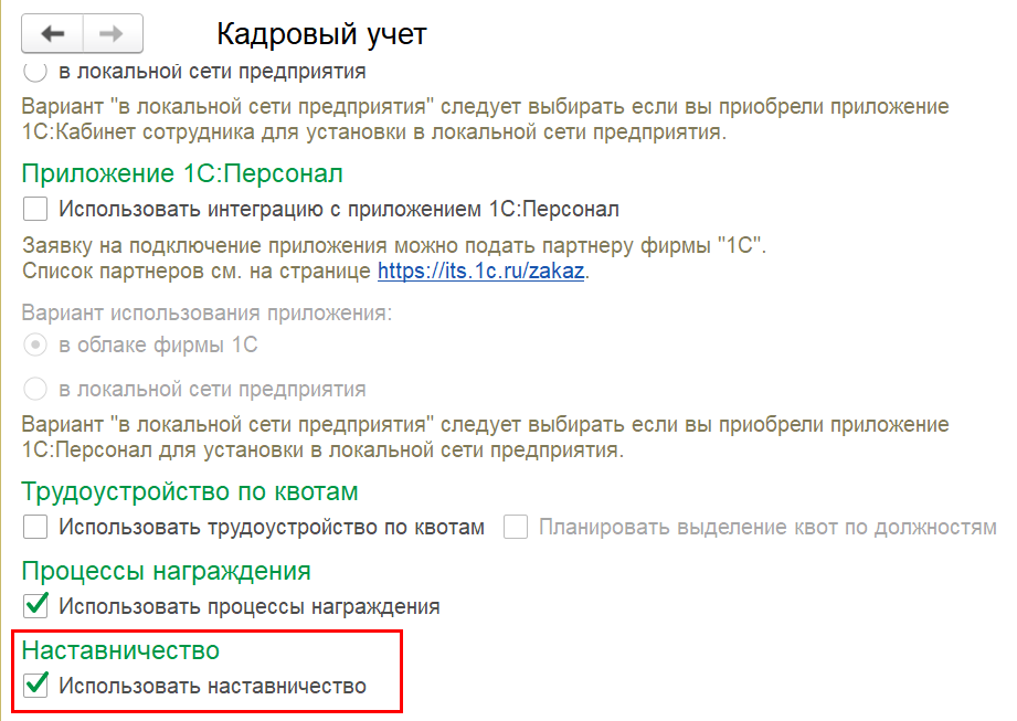 настроек кадрового учета.