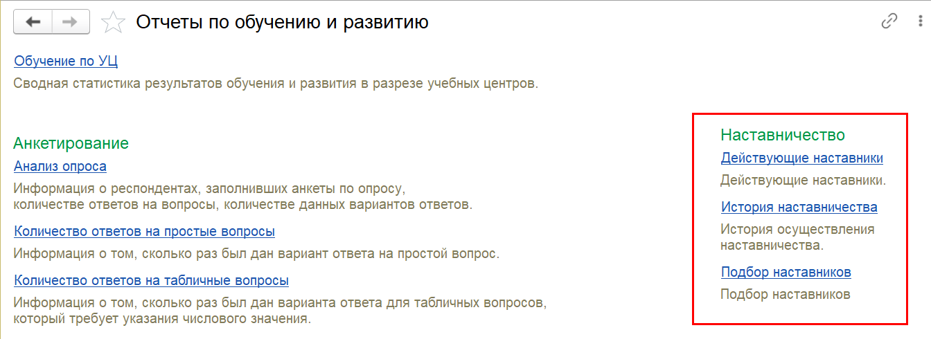 обучения и развития сотрудников) появляется подраздел Наставничество.