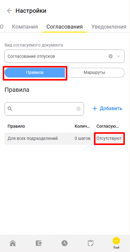 маршруты согласования заявлений сотрудников с 0 шагов, т.е. без согласующих.