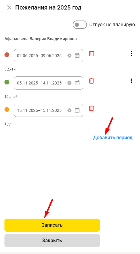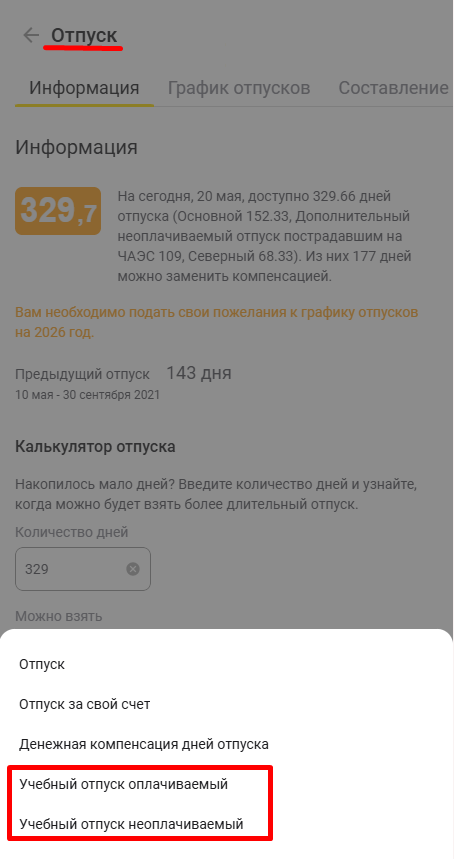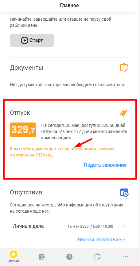 отпусков сделана более очевидной. Теперь перейти к подаче пожеланий в