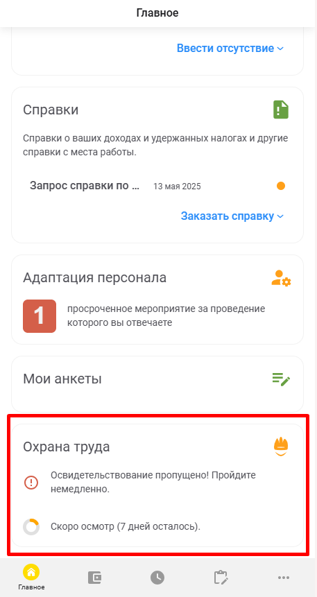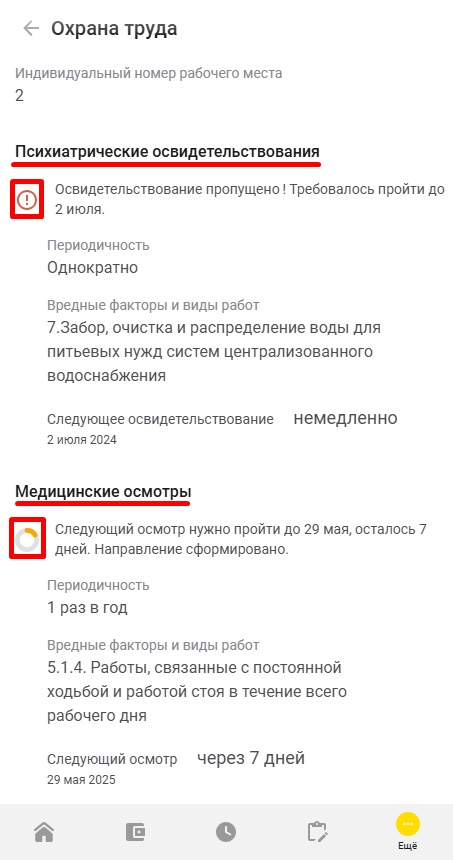 В этом разделе вы можете получать информацию о ваших медосмотрах и