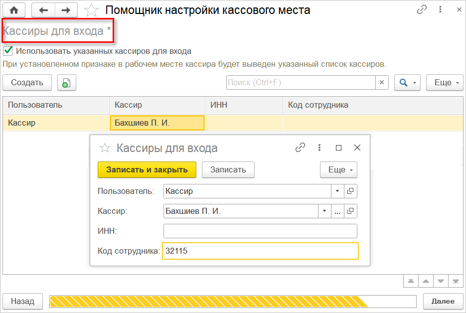 Дополнительно таблица кассиров для входа добавлена на отдельную страницу помощника настройки кассового места.