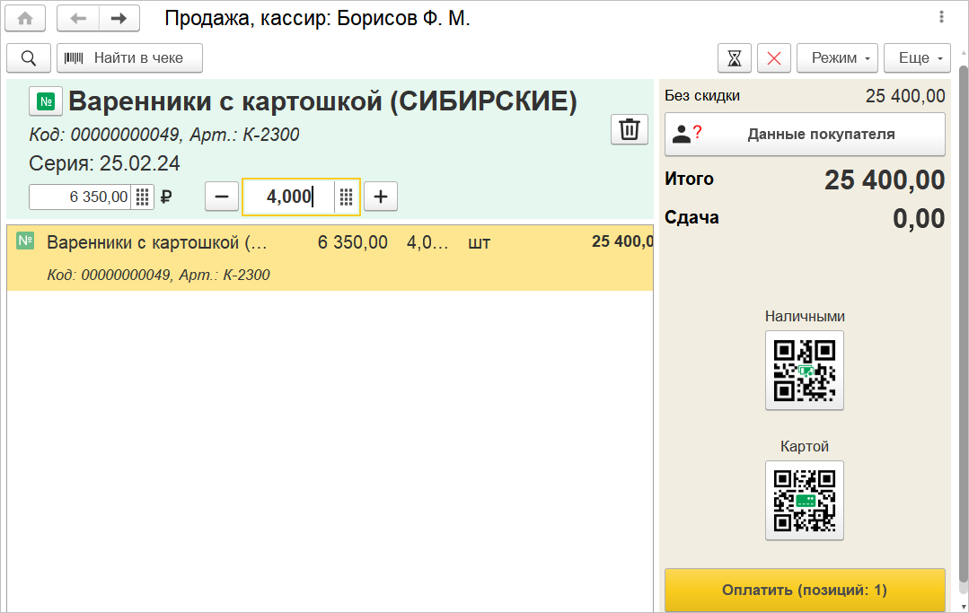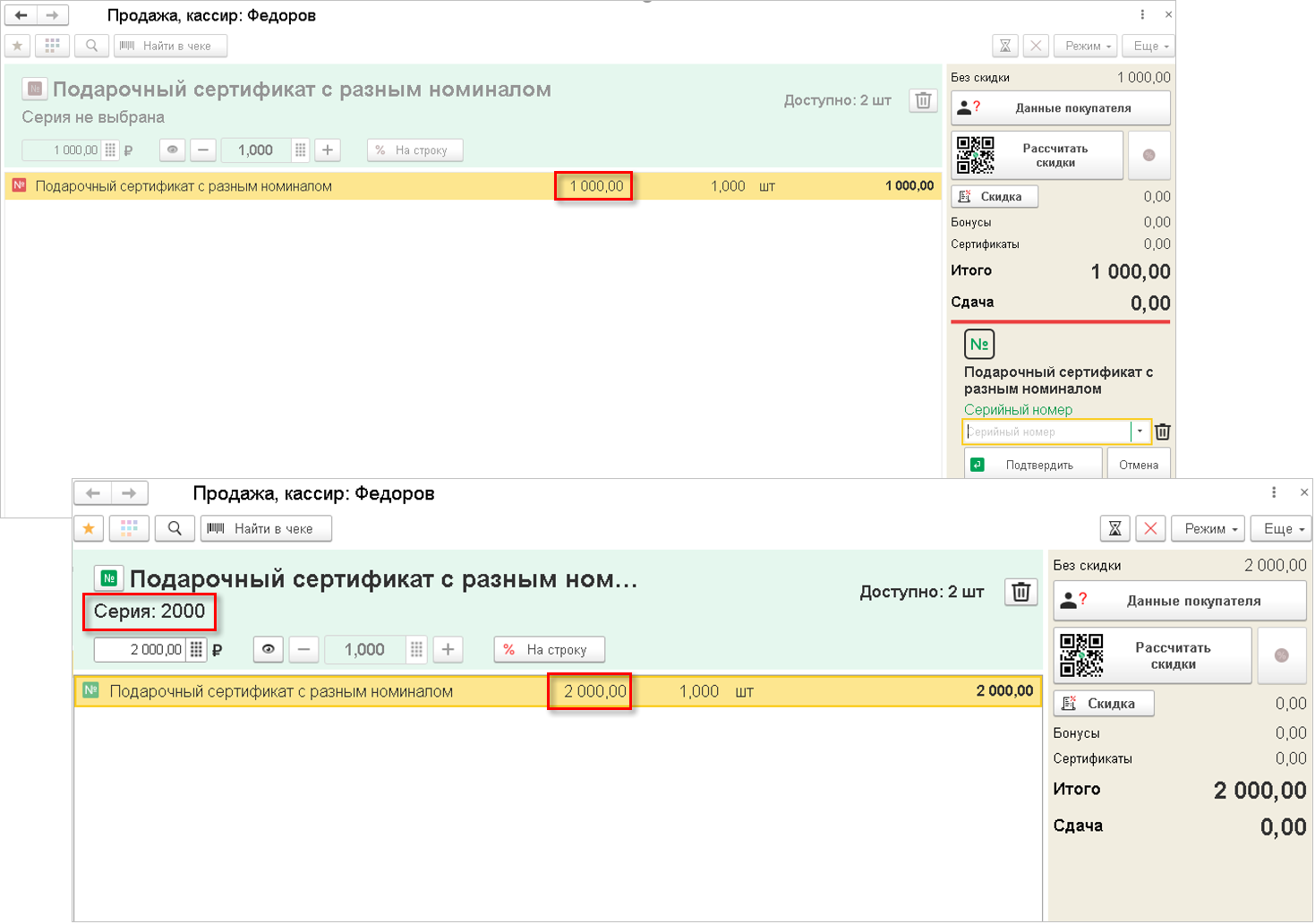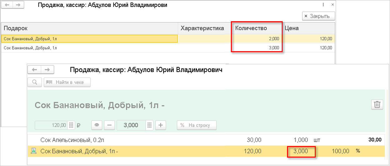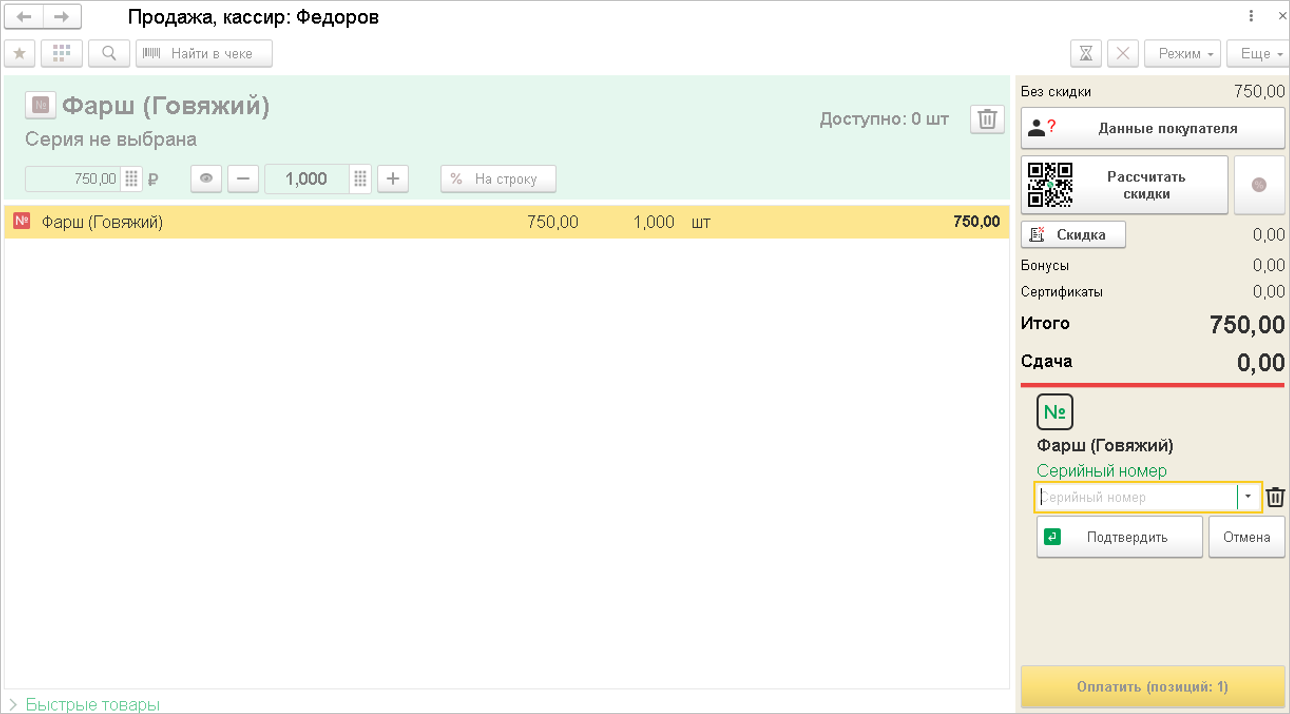 Неуникальные серии. Поддержана возможность работы с неуникальными сериями номенклатуры, используемыми в УНФ и Рознице. Теперь можно работать с номенклатурой, для которой ведется учет серий, но не используются серийные номера. В РМК при продаже товаров с такими сериями можно менять количество.