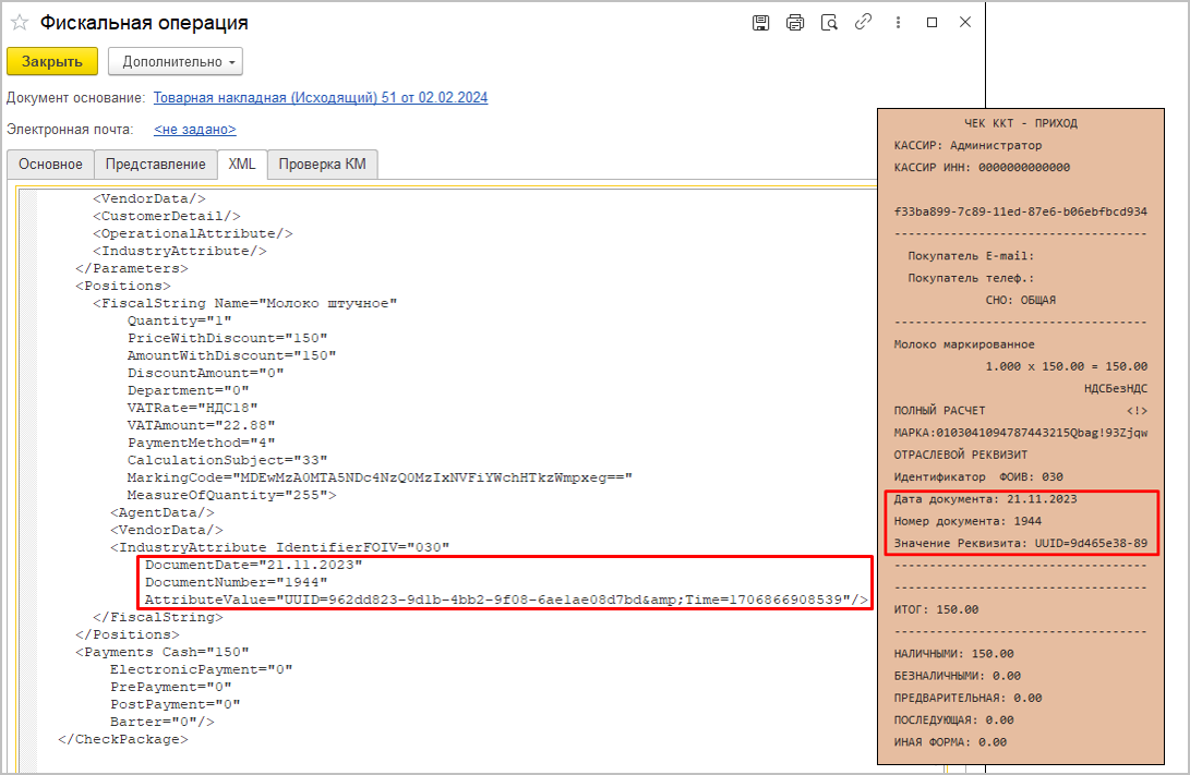 На рисунке ниже теги пробитого чека: дата, номер, ИД и тайм-метка проверки марки.