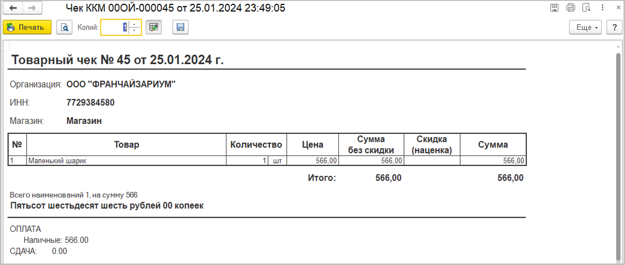 копию чека на подключенном устройстве печати. Это удобно использовать при