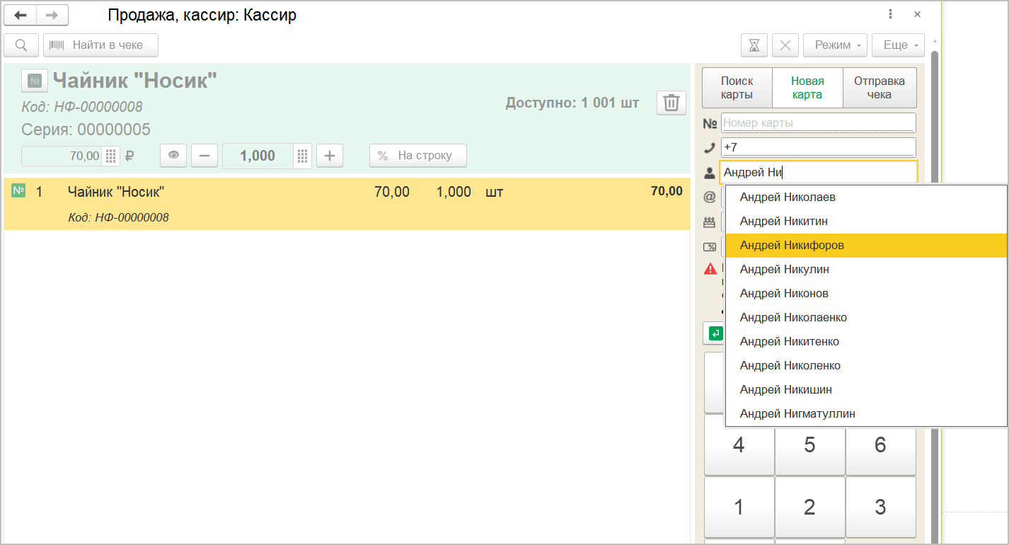 Упрощено заполнение ФИО клиента в РМК в момент регистрации новой карты. При вводе первых букв программа предложит доступные варианты имени и фамилии. Опция позволит избежать ошибок заполнения и сократить время на ввод данных.