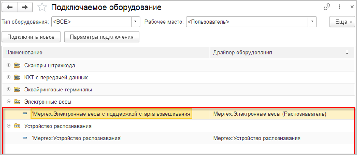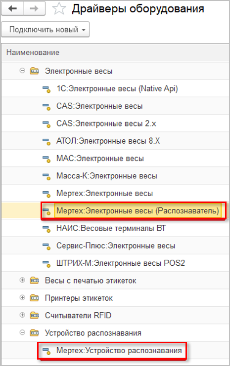 В справочнике «Драйверы оборудования» также будут два отдельных элемента для каждого типа устройства.