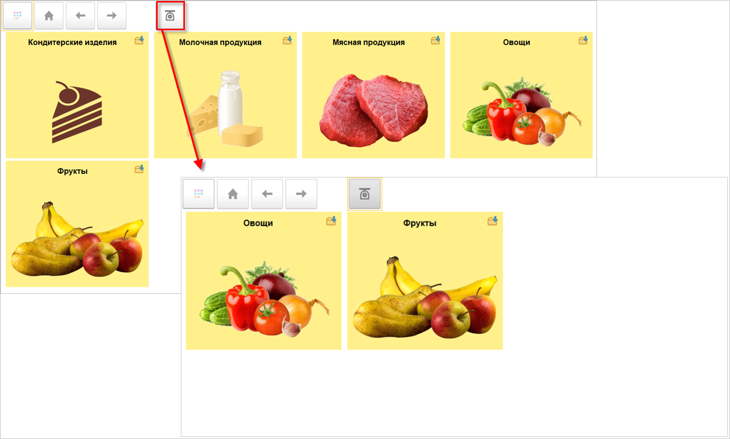 Для быстрого поиска на экране подбора товара имеется кнопка отбора весового товара.