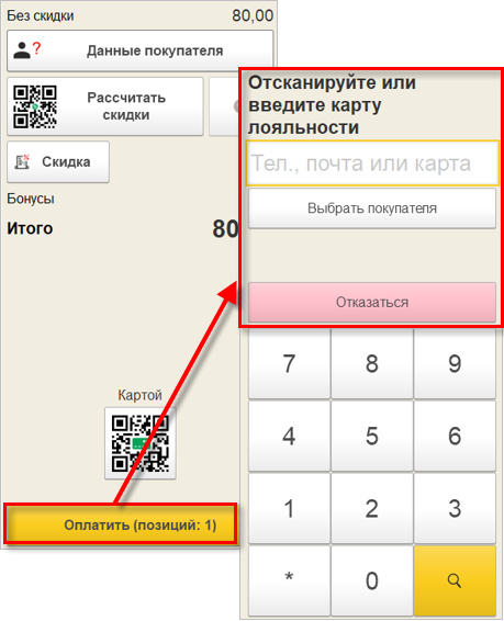 ввести карту лояльности".