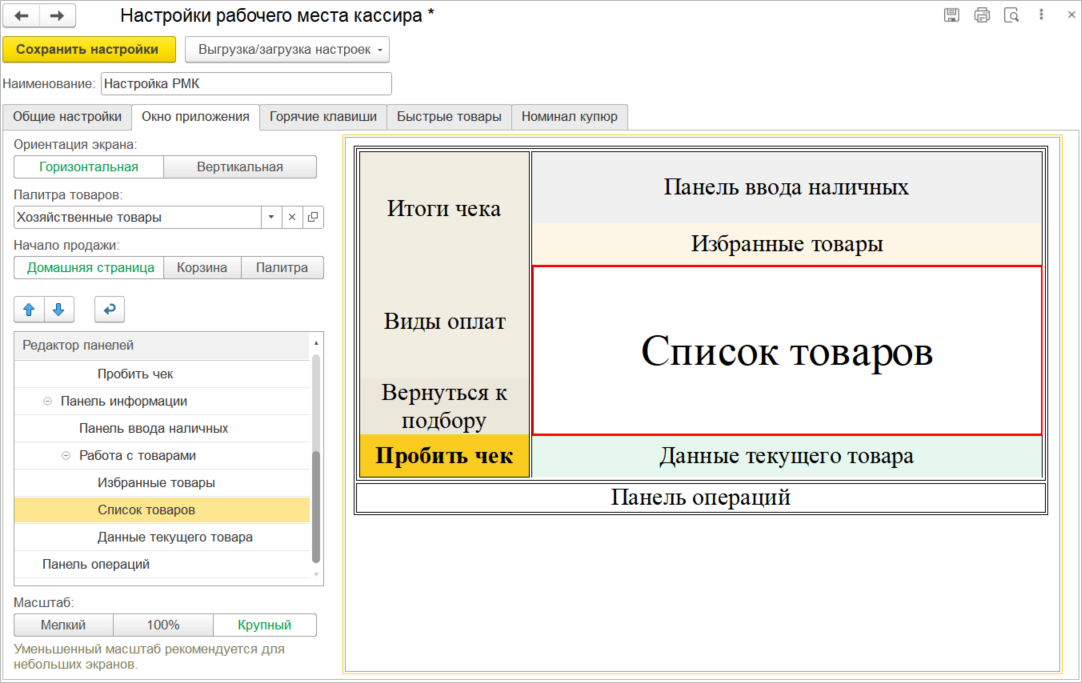 Новая возможность позволяет учесть особенности физического рабочего места кассира, специфику магазина, используемое оборудование и сделать его максимально комфортным для работы.
