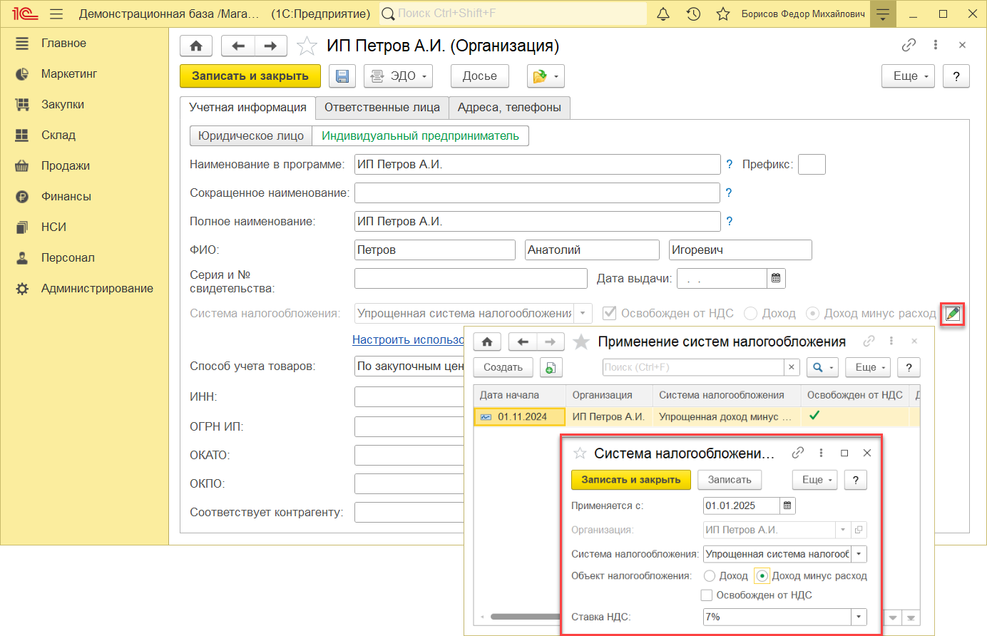 и в открывшейся форме заполнить дату изменения ставки НДС - 01.01.2025, снять