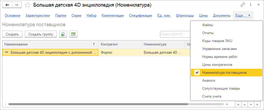 Если в перечне номенклатуры отсутствует подходящая позиция, то можно здесь же создать новый элемент с помощью одноименной команды.
