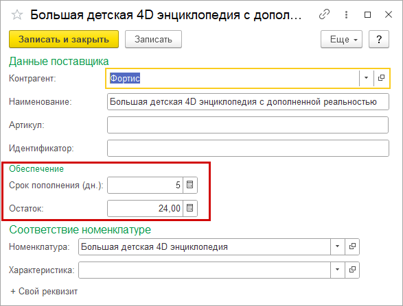 При заполнении по дефициту также учитывается срок поставки товаров от поставщика. Если поставщиков несколько, будет выбран тот, товары от которого поступят раньше.
