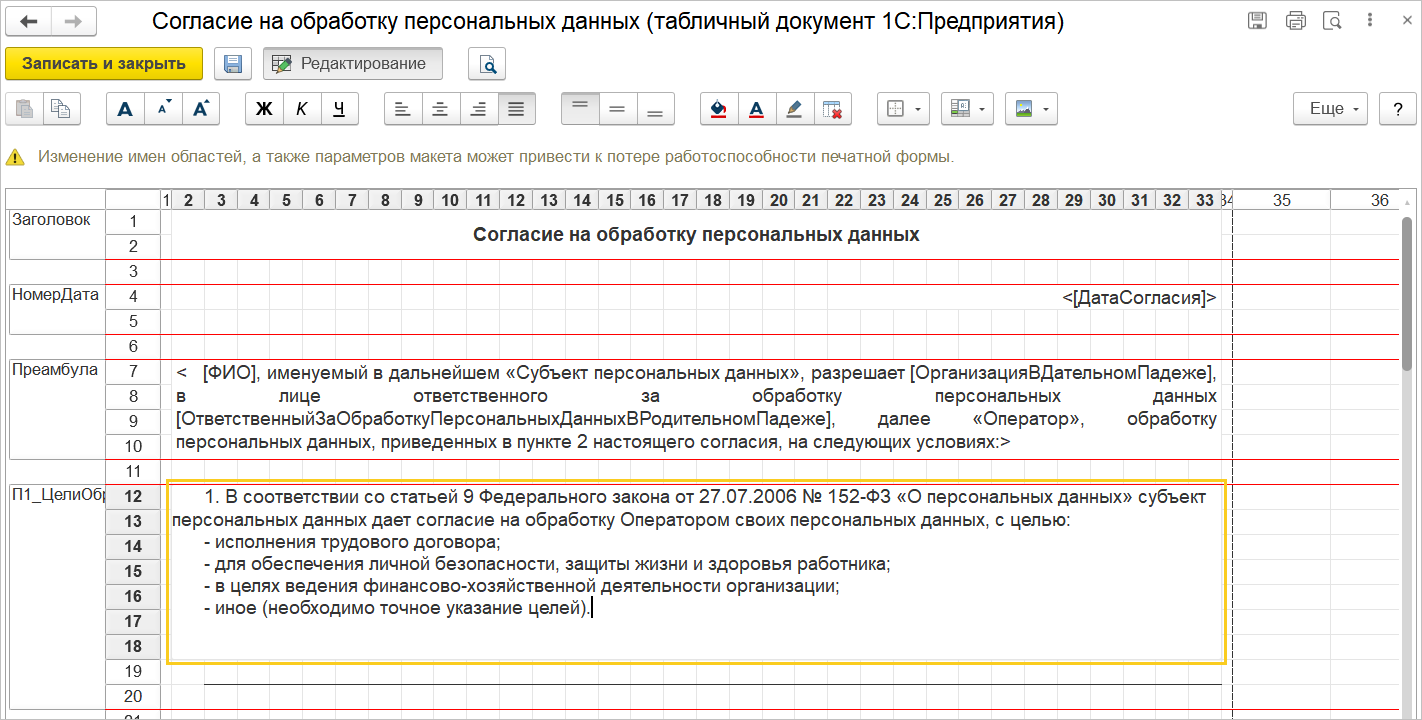 Предварительно текст бланка рекомендуется скорректировать, используя формулировки для розничного покупателя. Внести изменения можно в одноименном пользовательском макете документа в разделе: Настройки - Администрирование – Печатные формы, отчеты и обработки – Макеты печатных форм.