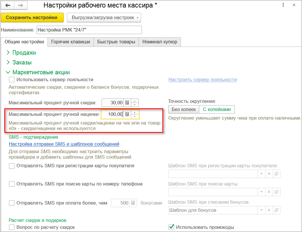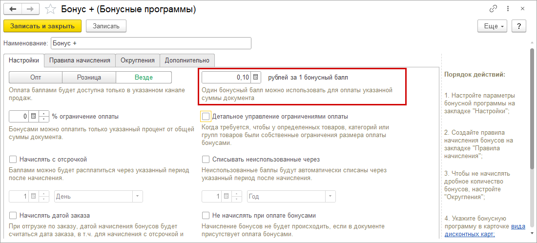 Настройка округления бонусов выполняется аналогично округлению сумм в документах, подробнее рассказывали здесь.