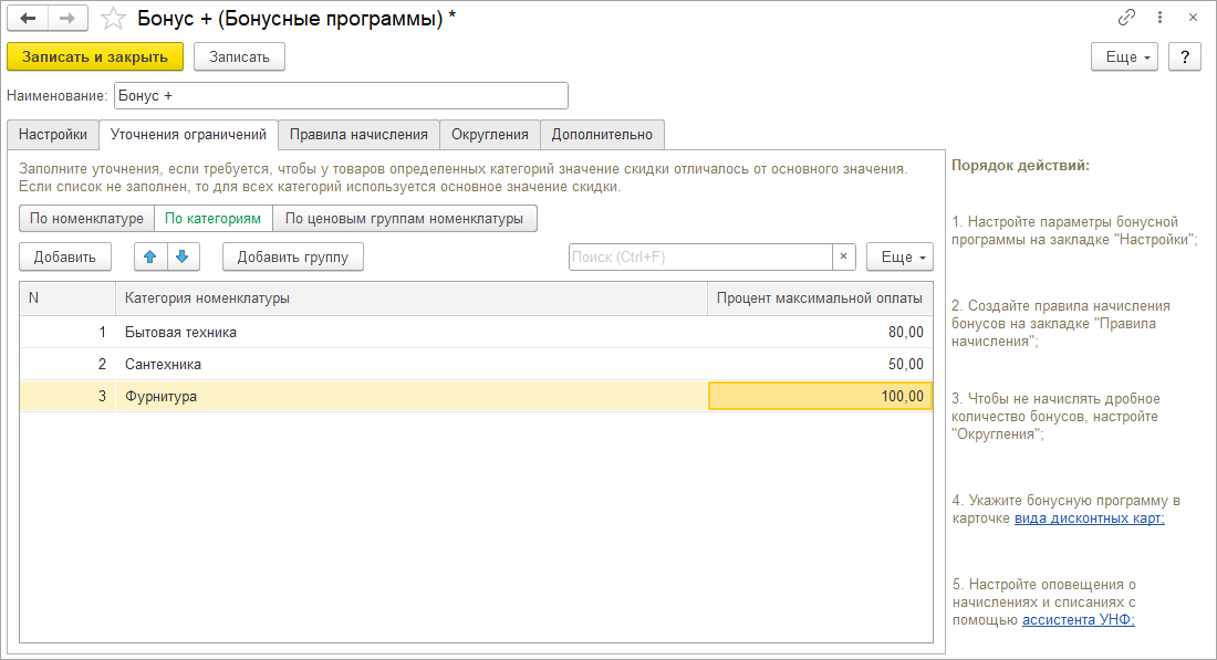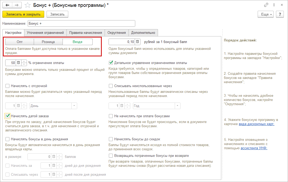 Полную информацию о настройке бонусных программ можно прочитать в статье.