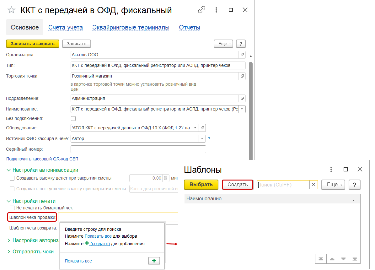К новой форме можно перейти либо из карточки ККМ, либо непосредственно из формы подключения.