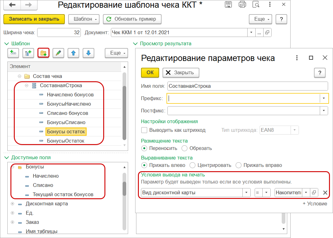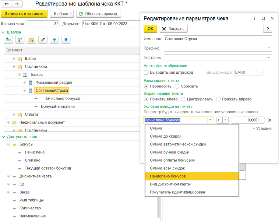 В документы продажи при оплате бонусами, добавлены поля с пересчитанными суммами в рублях. Они отображаются только если для выбранной бонусной программы установлен курс, отличный от единицы.