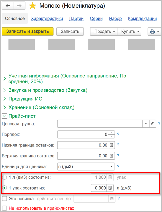 Например молоко хранится в упаковках, а в новых реквизитах указано, что одна упаковка молока состоит из 900мл (0,9л) продукта.