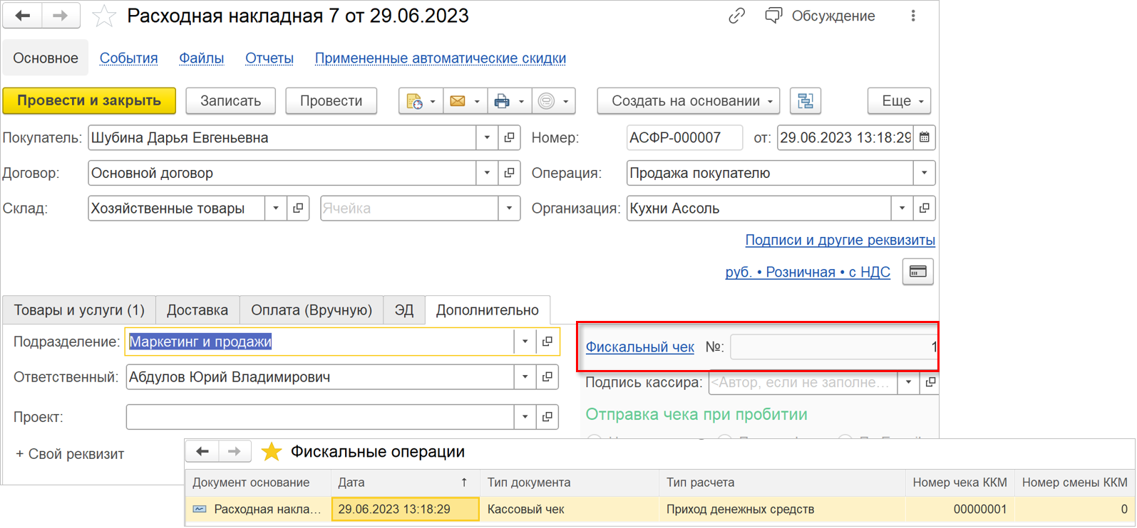 Если в документе Чек ККМ есть товар, который продается со скидкой, то весь товар рассчитывается, как товар со скидкой. При расчете "Количества товаров" в чеке из документа считается количество строк документа, «свернутых» по номенклатуре (исключаются дубли номенклатуры).