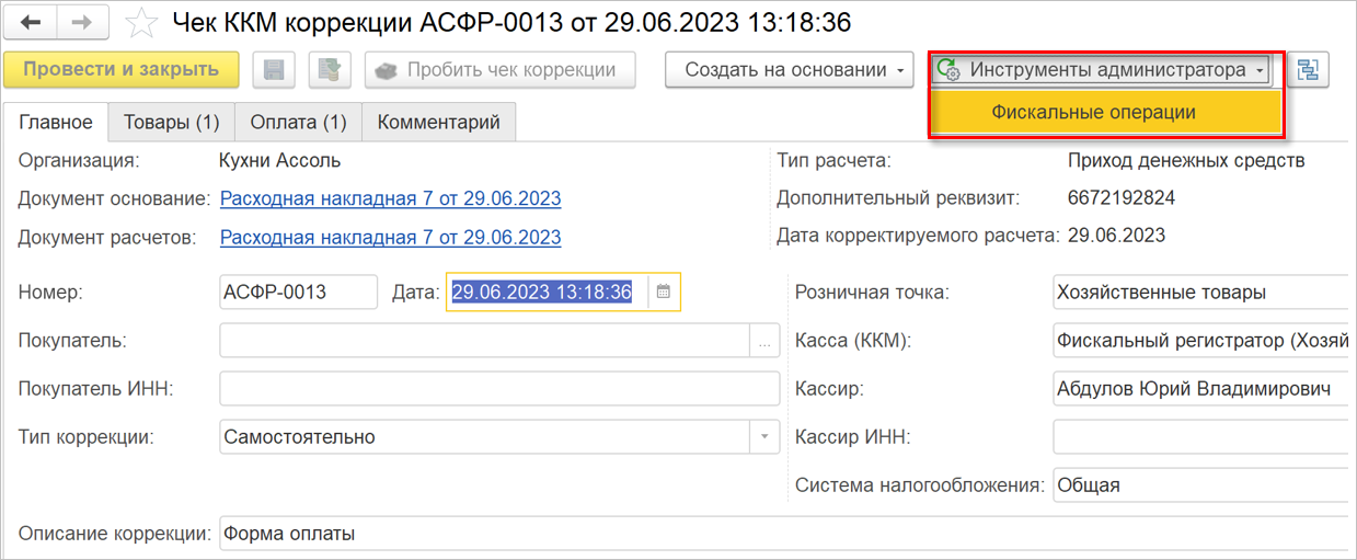 Дополнительно можно найти чек сканированием фискального признака или идентификатора оплаты платежной системы. При предъявлении дисконтной карты отображаются чеки покупателя за 3 последних месяца.