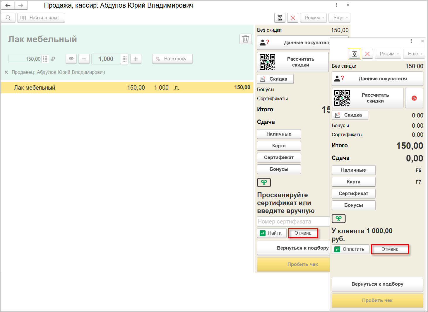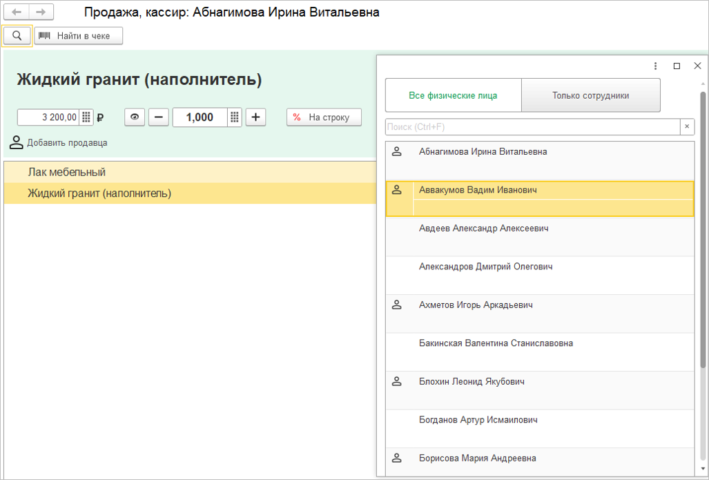 Учет личных продаж. Учитывать "личные" продажи в разрезе конкретных сотрудников стало проще. Теперь можно управлять выбором продавца для каждой строки чека.