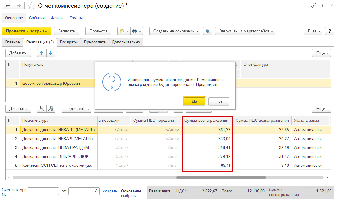 Комиссионное вознаграждение теперь можно ввести произвольной суммой, которая распределится пропорционально сумме продажи.