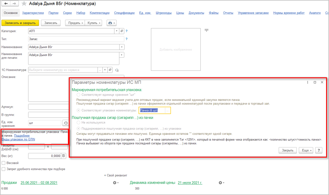 Автоматизировали заполнение количества потребительских упаковок при формировании документов ИС МП на основании прикладных документов. Для номенклатурной позиции единица хранения может отличаться от потребительской упаковки, например, для сигар упаковка может состоять из 6 шт.