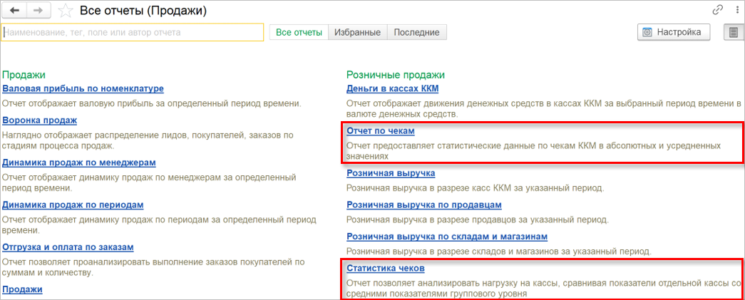 Новые отчеты по чекам. Добавили возможность получить полную информацию по чекам в двух новых отчетах: "Отчет по чекам" и "Статистика чеков".